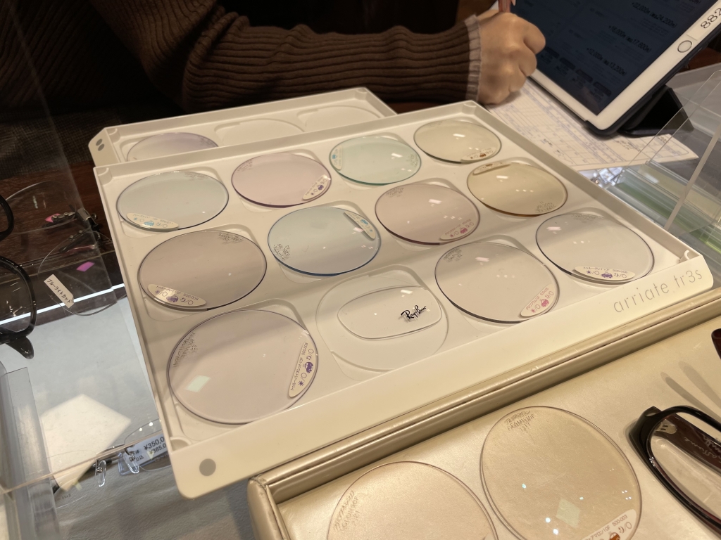 透け感のあるパープル系の色味で黒と混合カラー。レンズにはパープル系のカラー「トゥルーバイオレット」も15%入れた。レイバンのプラム10%がほとんど分からなかったの濃度上げ。料金はしめて8,180円。