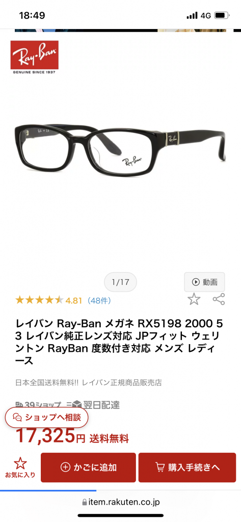 ちょいと気になってるのは、ネット通販の方が安いなってこと。後から調べたらまったく同じレイバンのフレームが13000円程度で売っていた。レンズ付きでも17000円。
