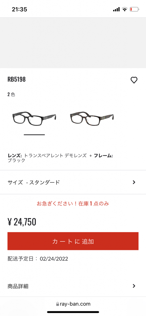 でもレイバン公式サイトだと24000円くらいする。公式高いな。。