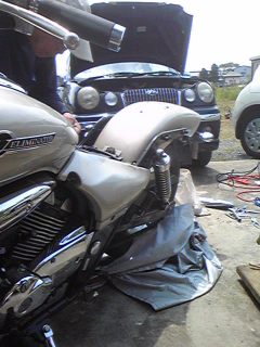 我家は車を月極め駐車場に追い出して カーポートにバイクを入れています。 バイクが月極め駐車場では怖いから そしたら何てこと無い……..泣き 駐車場に停めているのに誰かにぶつけられている!! お~い 修理代よこせ~