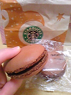 今、スタバには2種類のマカロンがあって、チョコレート味とさくら味、一個200円。