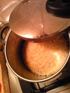 ウェットタイプの発芽玄米なので炊飯器でも炊けるのだけど、圧力鍋を使ったほうが早くて美味しいらしいのでいつも圧力鍋です。