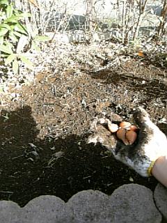 土いぢりしたついでにチューリップの球根を別の花壇に植え付けました。