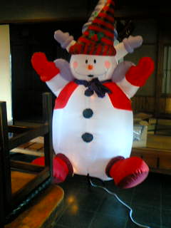 でっかいスノーマン こんなの買ったよ 2006.12.11 高さ240センチほどある大きなスノーマンを通販で買いました。 店先に飾るとのこと。 忘年会シーズンで実家の店もぼちぼち繁盛しているようです。 ありがたいことです。