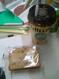 仕事の合間のカフェタイム クリエーターの仕事 2005.09.14 バニララテとバナナウォールナッツケーキでほこっと一息♪ もうひとふんばりガンバロー。 今日は画像の合成&修正とパッケージ台紙のお仕事。