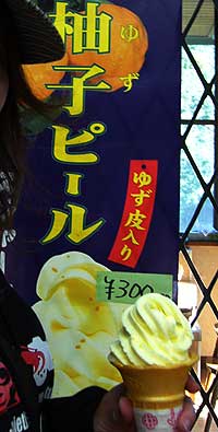 ここの売店でおいしそ~なポスターにつられて「柚子ソフトクリーム」購入♪