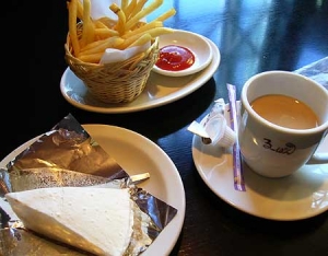 頂いたのは、ケーキセット(チーズタルトとドリンクバー)とポテトフライ(200円)